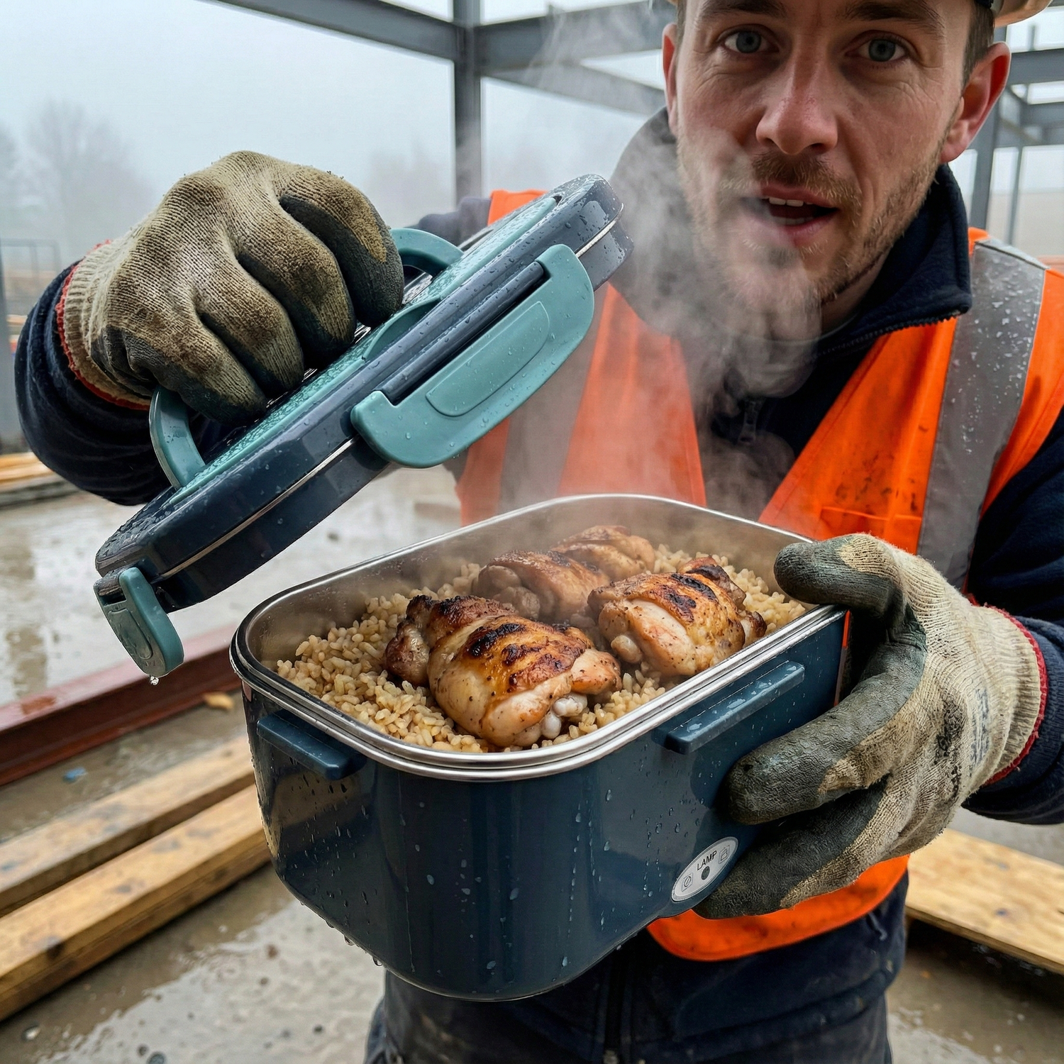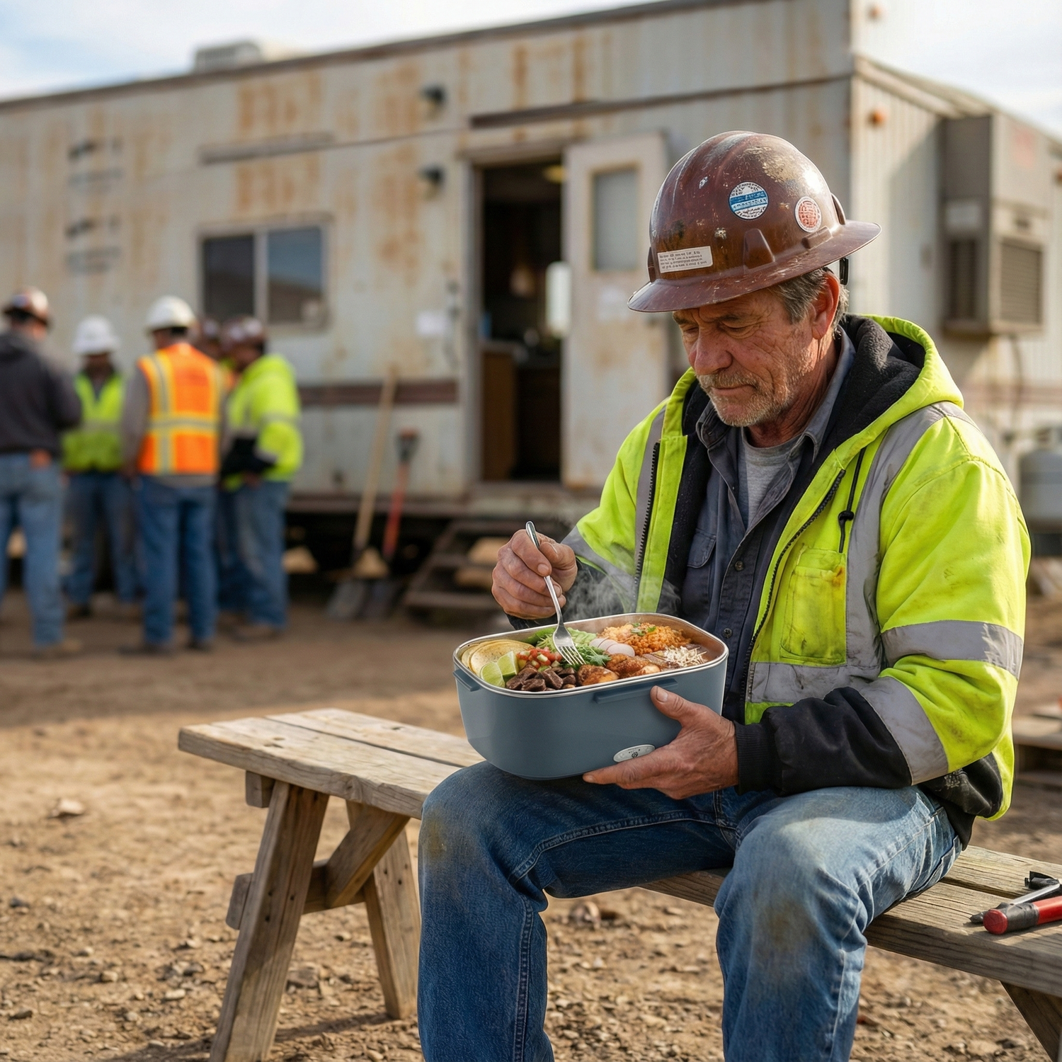 Don't waste your limited 20-minute break waiting in a line of 80 guys for one communal microwave. Whether you are operating out of a truck or working a remote site with no power, you deserve a hot meal. Our cordless, battery-powered technology lets you "set it and forget it". Your food is piping hot the second you climb down from the scaffolding—no cords, no waiting, and no compromise.